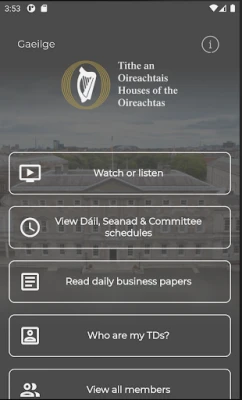 Interested in Ireland's national parliament? The Houses of the Oireachtas app gives easy access to schedules of business, live video or audio streams from the two chambers and Oireachtas committee meetings, and contact details for all current members.