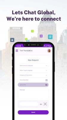 Users will be able to select the origin language and the target language to translate, the category, due date and to seamlessly upload documents from your iPhone to translate. Before submitting the document(s) for translation, users will be able to leave a customer message to the translator. Users will also be able to keep track of the translation history and the statuses of each translation job.