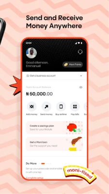 Moni is a trusted financial services platform designed to help you take full control of your money. With everything you need in one secure app, you can send and receive funds, save towards your goals while earning high interest returns, or pay bills in seconds.