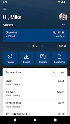 · Deposit checks in a snap by taking a picture of the front and back.