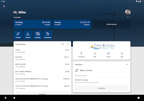 The Two Rivers mobile app is your personal financial advocate. It’s fast, secure and makes life easier by empowering you with the tools you need to manage your finances – anytime and anywhere.