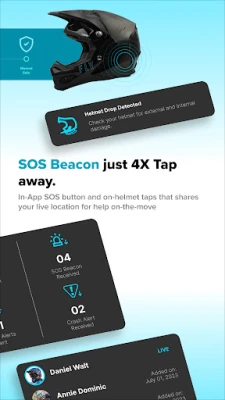 • Haptic rider-triggered SOS Beacon for non-crash safety events, sharing live location for help on-the-move